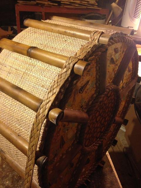 Thanks for the kind words ya'll! Next up... Edging. I use this woven material found at Oceanic Arts and Benson's. I iron it flat before hot gluing it on. I iron it again after I've glued it to spread the glue around and to get a tight fight around the bamboo.