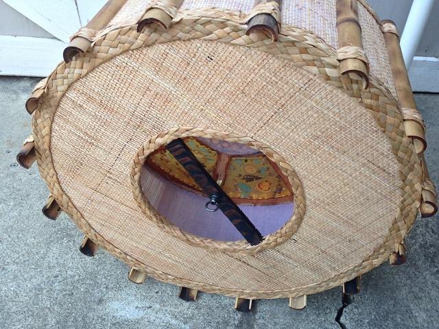 Love the hat trick on the bottom of this light. Old Kahiki hat outa bamboo. New hat made outa rattan made with a method of mine. (I think that Franks cane and rush has photos of how I did it on their website Still) |