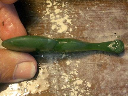 These little warclubs really are nice (especially the tiny tiki face :o ) You've really pushed your skill level up a few notches on these last couple of pieces. Great design, pleasing forms and restrained use of detail. I had thought "mussel shell" at first when I saw your mystery piece, as jade lends itself so well to the shape, but it seemed too obvious? !Obviously not! I 've clocked up a few myself over the years and found another nice offcut just recently that will be musselised too. |