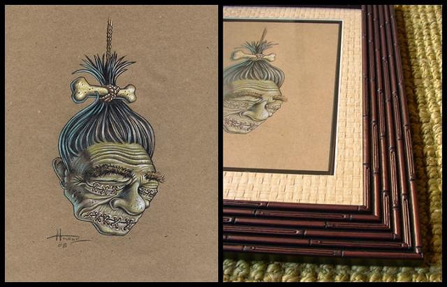 ALOHA!! I just saw this thread!! Looking at the first picture of Doug and I on this thread...I say DOUG wins!! Cus he has the biggest feet in the picture!!! ..and ya know what they say about bigger feet!!..means bigger *^&^&%%% So ..I guess Ihave to take second fiddle!!! I look forward to seeing you all there... I am bringing a lot of small stuff..new prints and because of popular demand..I made 3 high museum quality shrunken heads..made with REAL human hair and complete with rugged stands....for $300.00 ea First come..first sell. I won't make any more till Tiki Oasis..time permitting. See ya there!!! THOR |