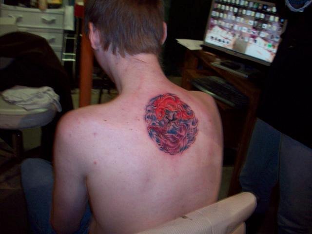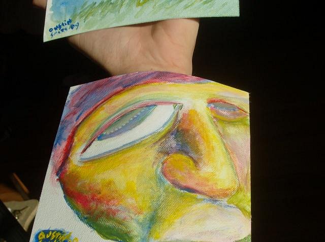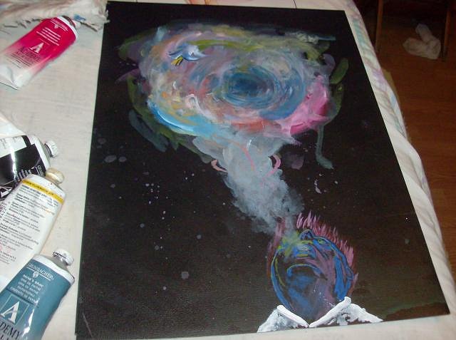 Whoa, havent posted any pictues in quite some time! Today me and mom went to the WinnipegArtGallery and snooped around for a while: those are the few pictures we got...before we got told to stop :P Painting updates! here's what i started playing with last night mostly just playing around with the colors, but why not post it! :D . it's a representation of the creative mind/spirit sort of deal. Oh! and HERE is my first Tattoo i got last month for my bday present from my sister--(she payed for it she didnt do it) :lol: that's what i got for tonight! i'll post sometime soon!