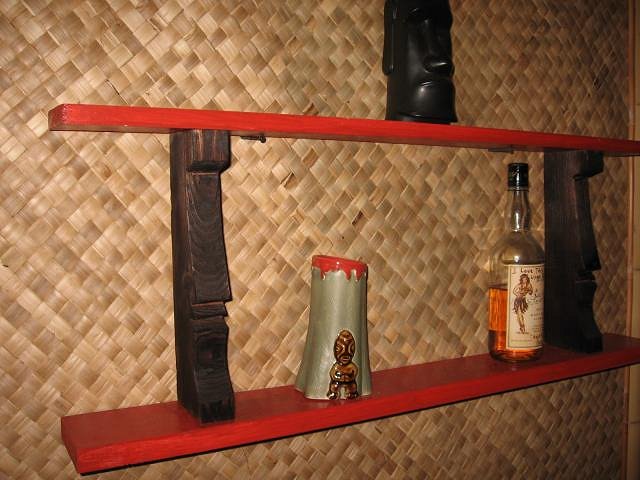 Ben, Just wanted to say thanks for the rad tiki mug shelves! They don't have a spot on the wall just yet, but I hope these pics do them justice.