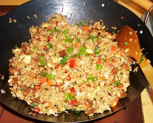 Its time for my....."Unusually Large Potstickers" & Hong Kong Fried Rice.... Made from scratch, Ground pork,Ginger,Garlic,Soy Sauce,Sesame Oil,Salt & Pepper... Steamed & lightly fried in oil... Fire up the Wok & make some fried rice.... Make a dipping sauce of Soy,Sesame Oil,Garlic,Ginger,Rice vinegar,Chili oil... |