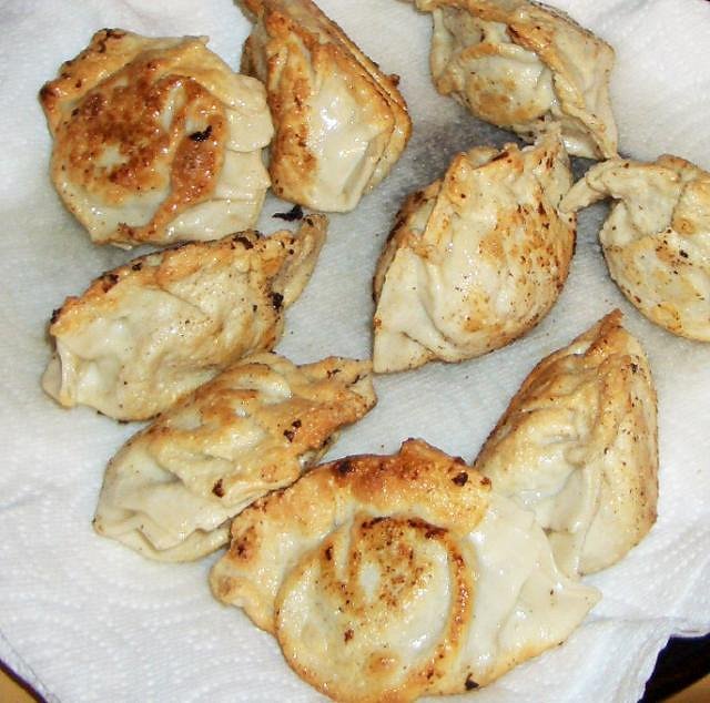 I steam them for 15 minutes,then they go into a fry pan with hot oil to brown |