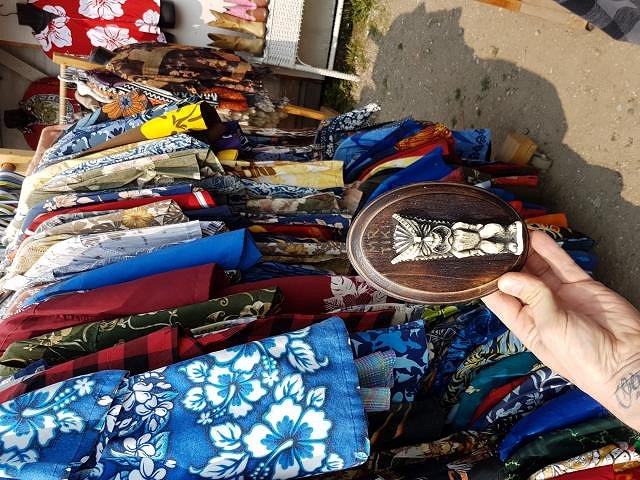 Along the way we stopped in at this roadside flea market and Mr.Tiki was happy to see a decent selection of Hawaiian attire.