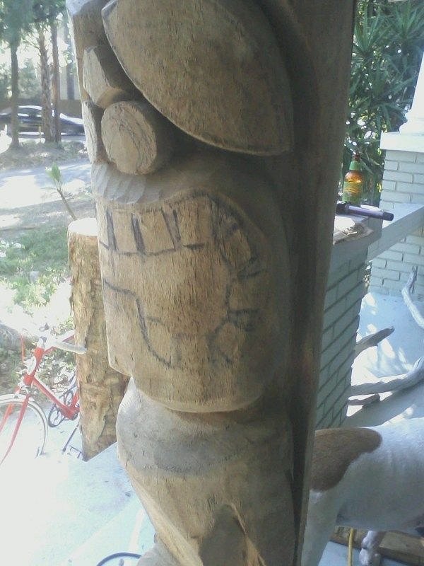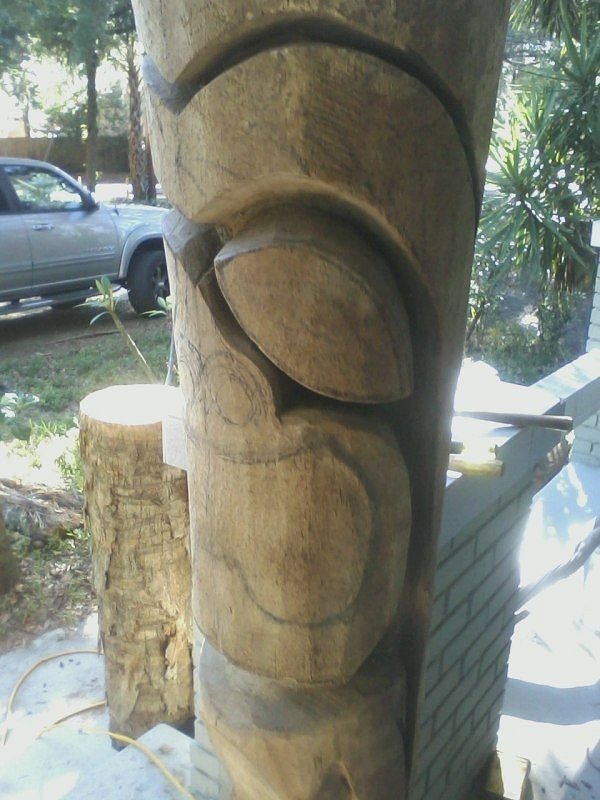 well, I was able to get a little more eye detail done and then it started pouring. Didn't sell any tikis.... But, I met a nice Oil Tanker captain who lives in Rincon Puerto Rico who wants some of my tikis and offered me a place to stay near the good surf spots & a place to work. So I may be going to stay in Puerto Rico for a spell...