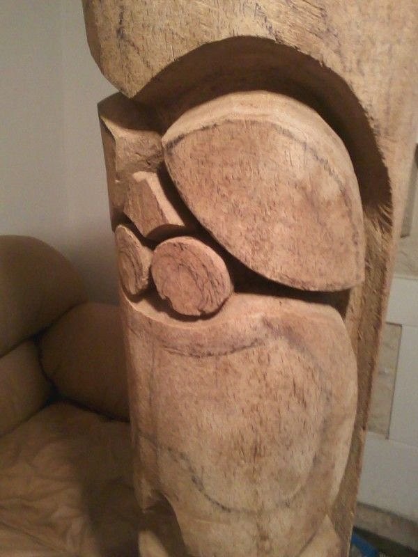 ok, so I need to glue a tooth back in on the kanaloa, and also glue one of his "spikes" back together, and then I'm gonna let him sit for a few days. I handed over a bunch of tikis to a local restaurant owned by a girl that I went to high school with and her husband. They're way cool and like to display local art, so basically I have some stuff displayed stuff there. Anyway, I need to get some new projects started because I've been focusing too much one one piece. It's making me feel weird. So I'm starting a new big one tomorrow. Maybe a Marq.... And I did like 12 or 13 miles on my new (old) roadbike today. Felt good!