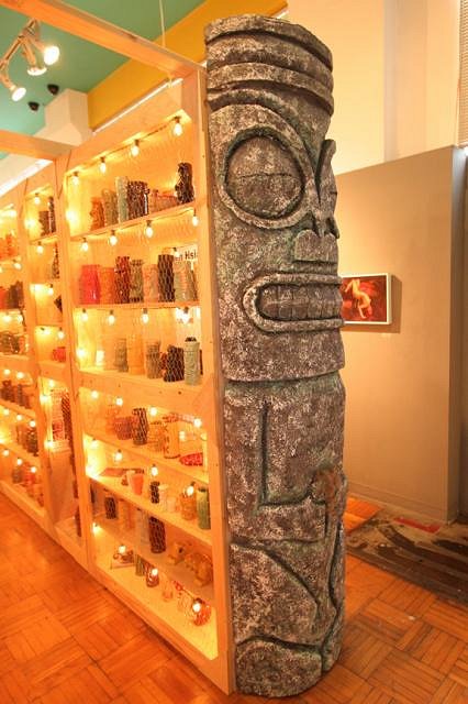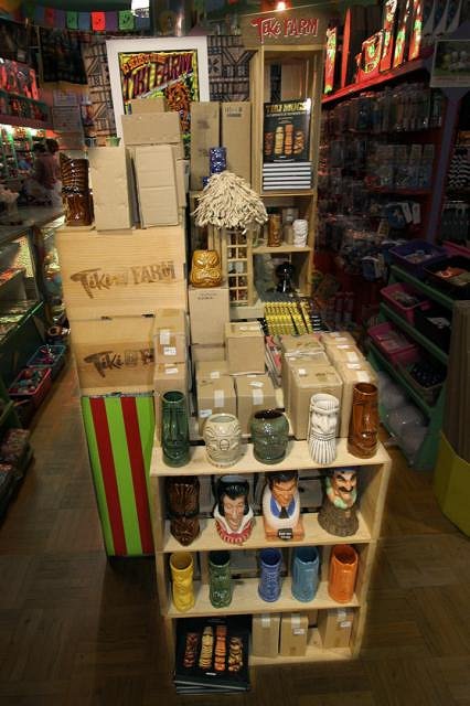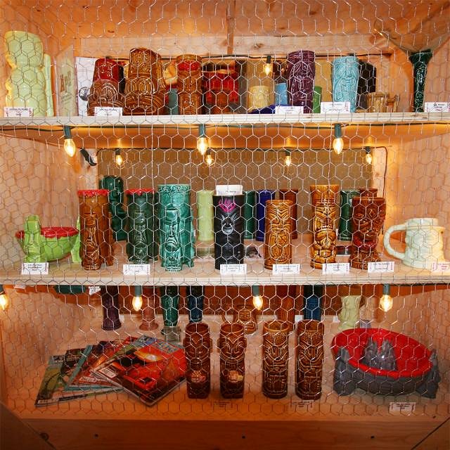 I went back the day after the opening party to walk through with Holden as he gave a brief history of Tiki Farm and talk about the mugs on display.