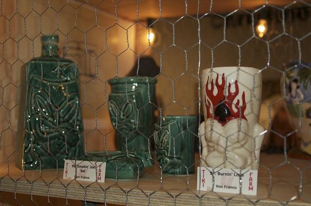 I’m really glad I made the trek out for this event and have to say I had a blast. Free booze always sweetens the deal. It was cool seeing all the Tiki Farm mugs in one place along with all the people who enjoy them. Also, great meeting MauiRose at the show along with Coco Joe and other Tiki Central folk such as BigTikiDude, Bora Boris, Squid and TikiG earlier at Tiki Ti for the unofficial pre-party. Here are some close-up photos of Tiki Farm animals in there cages. All taken by my drunken girlfriend Mellissa. She later stumbled around asking the question to anyone who would listen, “Aren't these mugs supposed to be drank from instead of collected”? Okole Maluna,