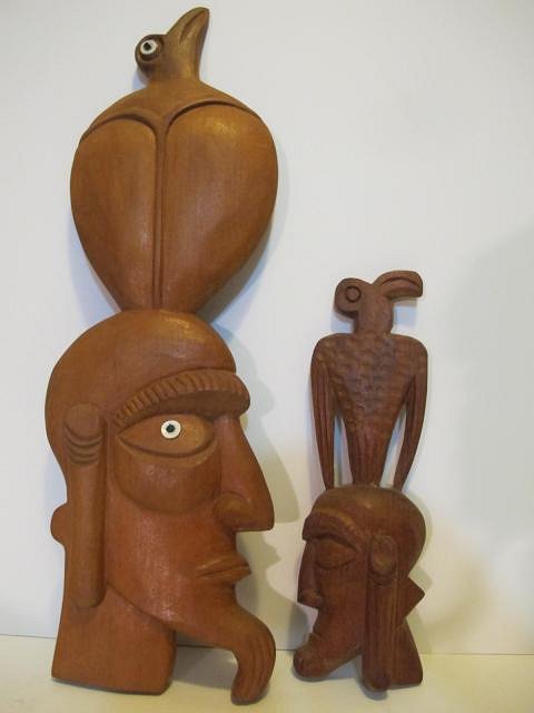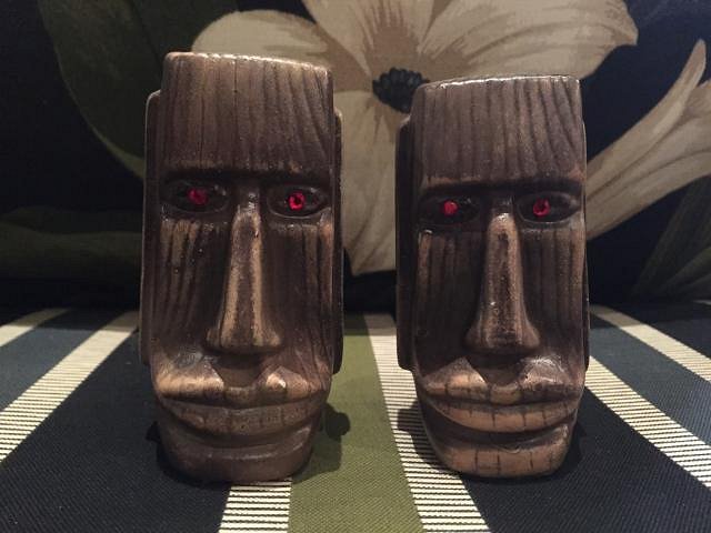 Found these tiki bookends the other weekend at a local yard sale. They each appear to be carved from a single block of wood and just feel like they are from the 70's. I am sure they are nothing special...but they are a welcome addition to our tiki mug display. Anyone happen to be familiar with these? I've searched the forum and around the web and have yet to uncover any bits of relevant info. Thanks!