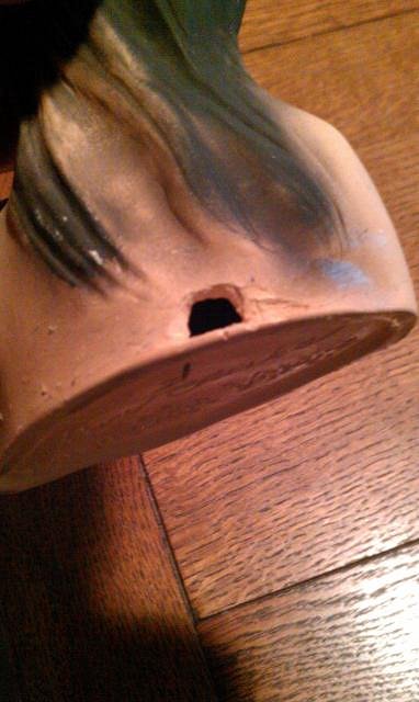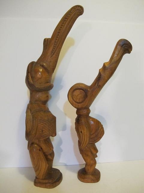Wow there sure is a lot of good things being found. This whole page is outstanding. TheBigT you can putty that back hole with Elmer's Wood Filler. Overfill it and let it dry for several days then sand. It will stabilize the damage. Tyber Tiki we have been collecting for around 17 years. We just now found a set of bookends like yours to add to the collection. I think you have a good find there. Cheers and Happy New Years, Wendy |