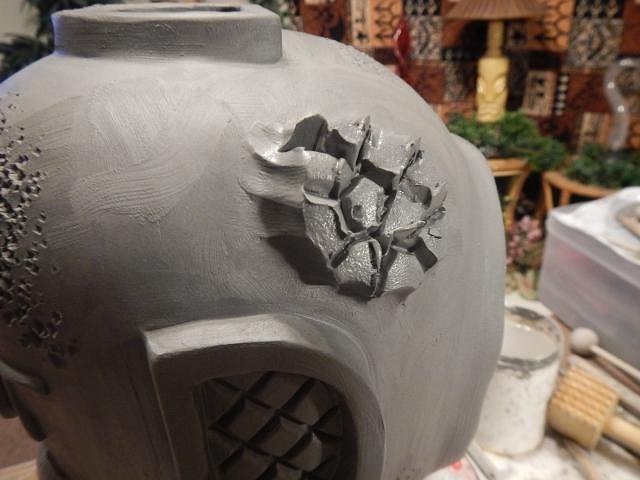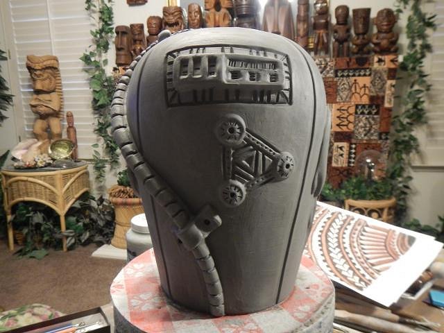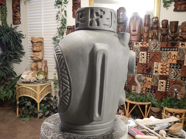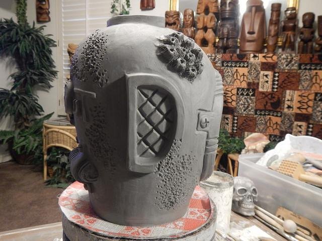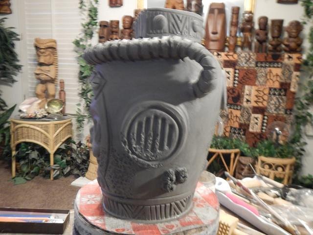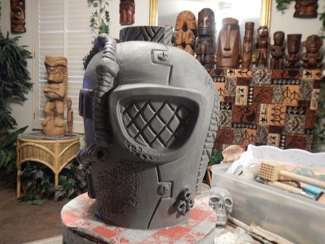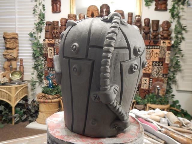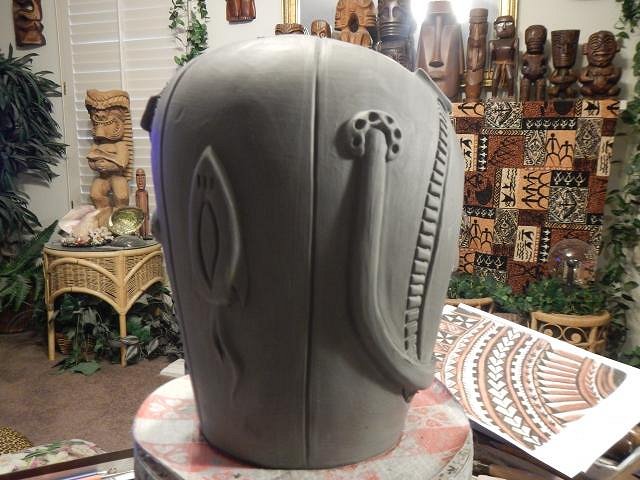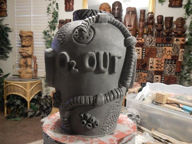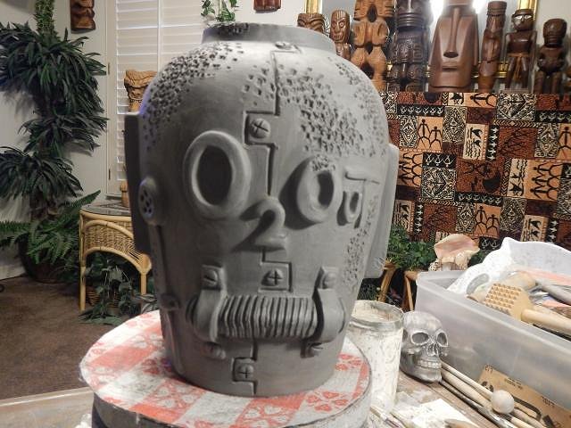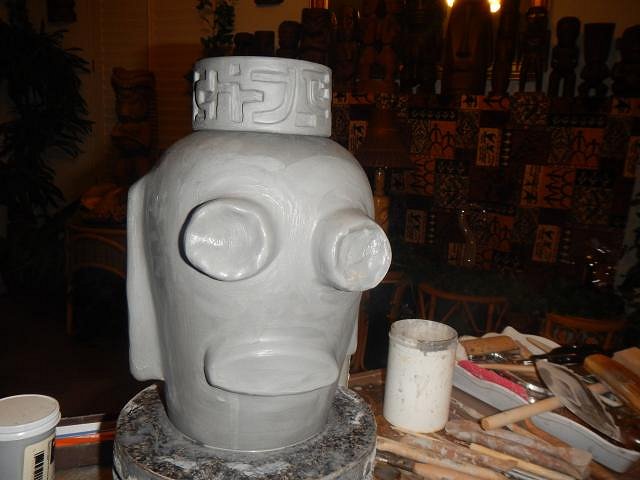 CyroTiki I am working hard on Wish List #8. At this point I have no idea when I will get it finished. Once I do I will open Wish List #9 and take orders. If someone requests a Astronaut Tiki Bob I would make another or if no one takes this one then it's theirs. Glazing will make a huge difference on how all of these will look. These are huge. I should measure them once they are dry and fired to give everyone an idea.