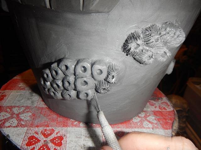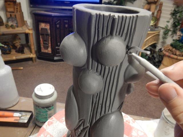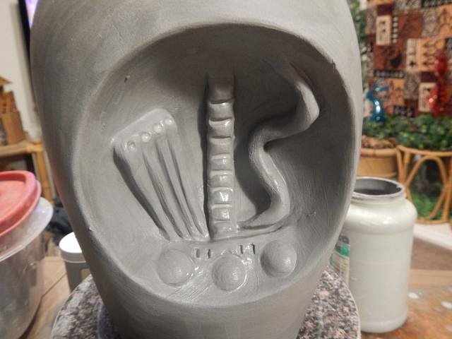 I took a blank fogcutter mug and began to add clay and then days later to carve the clay.