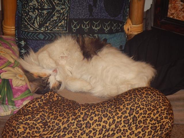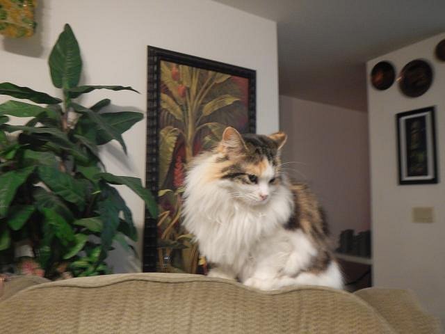 If you look closely you will see the little fur ball is on my lap. Good thing she weighs about 1 1/2 pounds. Tiniest cat ever.