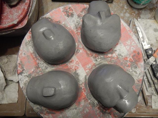 This process takes a lot of days. First I make solid mounds of clay and I let it sit for a couple of days until it's a bit firm. Then I start to add more clay to form the face.