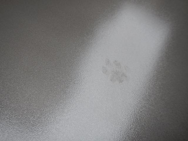 I never did figure out which visiting cat, there are three, and how each time it was only one paw print!