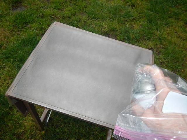 The work went like this...I sprayed a layer and left the table in the sun to dry.