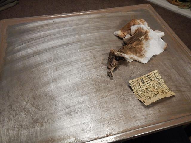 I spent a day repeatedly sanding are wiping the rust off the table.