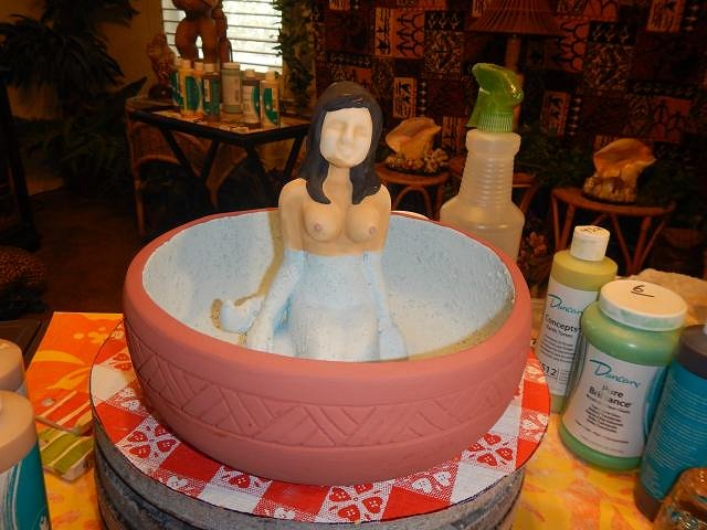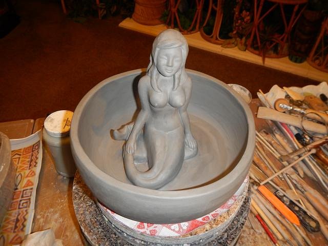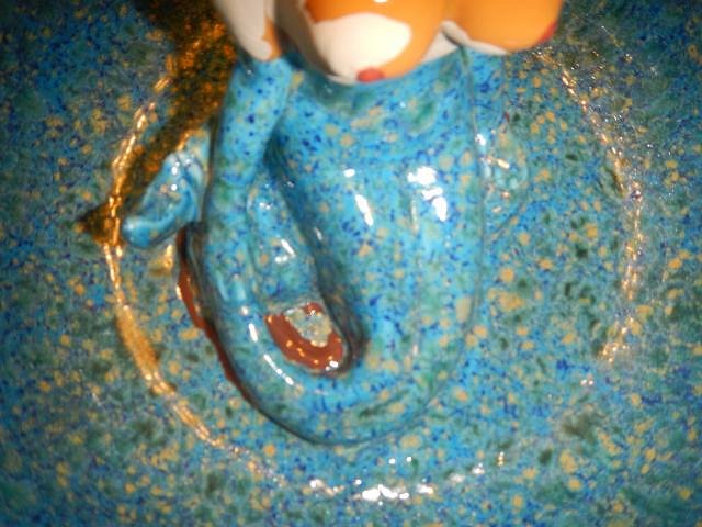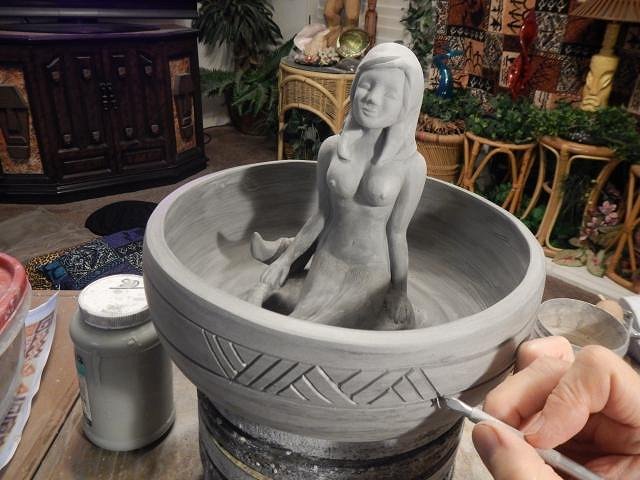After her second firing I picked up the bowl using the mermaid as a handle. Woops! She came loose.