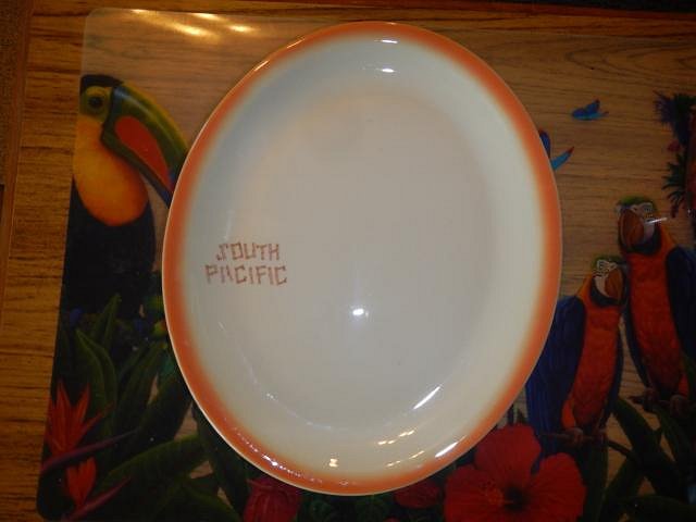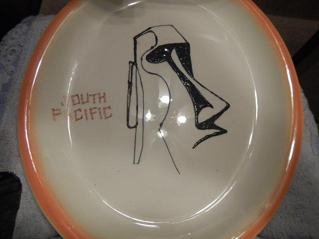 It's a three day weekend and I bet you are all out having fun. I've been glazing since this morning and now I'm taking a break. I decided to post something I made for Dan awhile back. Here are all the steps. Many years ago we bought a set of restaurant ware dishes etc. We recently sold the set but I kept this odd numbered one because it had a imperfect tiki decal. I wanted to do something to this dish as an experiment. I tried out some sandpaper and it worked to remove the tiki. I left the words because they were good for my design. I had this product that I had bought at a thrift store and I wanted to test it. I started to draw. It had a very fine tip. I filled in all the parts a squirt at a time. Once I finished I let it completely dry. Here it is fired. The words remained and didn't burn off. I had guessed an 06 clay and that's what it was. Dan hung it in his tiki jungle room. That was fun. Now I'll watch for blank plates like this at thrift stores so that I can play again in the future. Cheers, Wendy [ Edited by: danlovestikis 2019-05-27 21:22 ] |