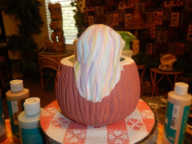 The next project was a fun small one. A carved green coconut with a Frankoma swizzle stick locked in place.