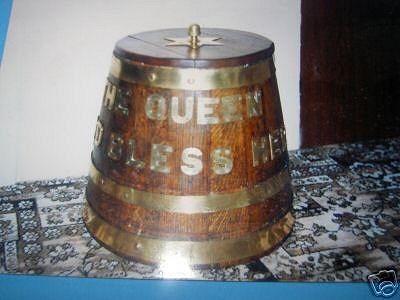 Now THAT'S a rum barrel... For when this link no longer works, here's the description: ROYAL NAVY RUM BARREL, MADE OF OAK AND BRASS, THESE WERE USED UNTIL 1970 FOR A DAILY RUM ISSUE, THE CONDITION IS VERY GOOD, CONSIDERING ITS AGE, THE NUMBER 11 IS STAMPED ON THE TOP OF THE BARREL WHICH I AM TOLD IS DESTROYER SIZE, I CANT VERIFY THIS BUT IT IS FROM A BRITISH WARSHIP, DIMENSIONS ARE 14 INCHES WIDE AT THE TOP, 19 INCHES WIDE AT THE BOTTOM, 18 INCHES DEEP, I HAVE OWNED THIS SINCE THE MID SEVENTIES AND I WOULD THINK THEY ARE QUITE RARE NOW Sold for over US$3,000. JTD [ Edited by: JTD 2006-12-10 06:22 ] |