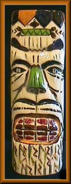 I Have Been Told This Is A Cerami-Dreams by Vera - By Vera La Fountain Dunn located in Hollywood Calf. in the 1940's - A Very Fine Example Of Early Tiki Mugs, Hmmm, perfectly legal puffery aside, that design is commonly attributed to Johnny Sens, a rather colorful old character from the Gulf Coast area. This design is one of a few I know of, and can occasionally be seen sporting the name of an old restaurant in Mississippi. Sens was from, at one time, New Orleans, and his designs/molds (if they were even his own) were later appropriated by others and used for amateur pottery projects. I've owned a few, seen many more. Which one is really an authentic made by Sens mug, which is a hobbyist repro, it's all rather cloudy. Where it all begins and ends is above my pay grade.