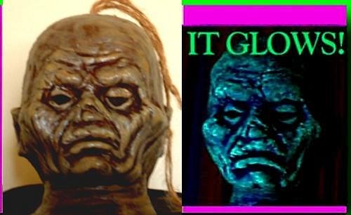 After much experimentation with creating glow in the dark vein patterns on things, I am offering my (approximately) 4 1/2" tall GLOW IN THE DARK shrunken heads with brightly glowing vein patterns! I am still refining the first one so only test photos of vein patterns are posted here, but it looks incredible. Again I am avoiding the Ebay on this, and offering only here on Tiki Central. You can buy one (Paypal only, folks!) for $20 and that's postpaid anywhere in the US. Overseas orders, please write for your shipping rates. Please send you orders and Paypal payments to [email protected] ... Thanks for looking and best wishes! The basic glowing head: The (optional) vein effect I'll add: |