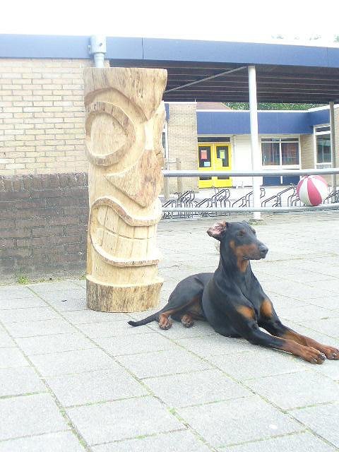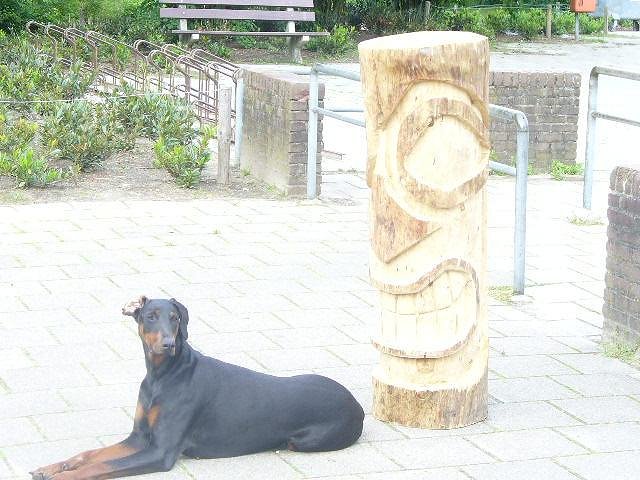 What a beautiful dog! We had a doberman when I was growing up! Nice carving too! |