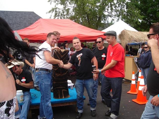 The Road Rocket Rumble is a hot rod show and rockabilly weekender in Indy. As one of the longest running weekenders of its kind, there are lots of bands and well over 500 cars. The club hired me to carve tikis at their show this year, as well as sell some of the ones I bring with me. I know this type of show is kinda off topic, but for those of you that dig the rods and rockabilly, this is a killer time. Stop by and say hi, when I'm not running the chainsaw,I'll be by my 57 Ford gasser most of the weekend. |
