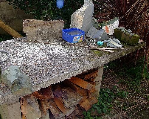 Then I drag this out next, out comes the bench grinder to rough out the piece then I get my wee die grinder with a selection of burrs to shape and define Then the sanding and polishing utensils Thats it really. Eyeing up the drill press in the garage now too - figure I could use some bigger burrs with that! Turn it on its side like Tama or Paipo (I dont remember who has that in his workshop?) :) Hope that answers some of your questions Benz :) KS |