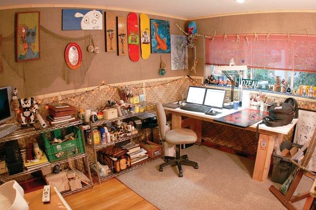 Very cool room....looks very similar to mine, with all the cool stuff on the walls for inspiration. You should be able to get in the "zone" and produce some really cool stuff while in there....get to paintin!!! |