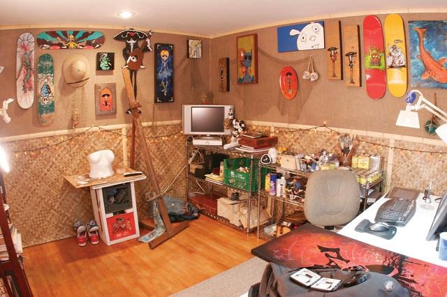 What a great studio...your artwork looks kewl...love the boards. Surrounded by all of that tikiness you should get some great work done. :) |
