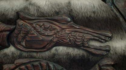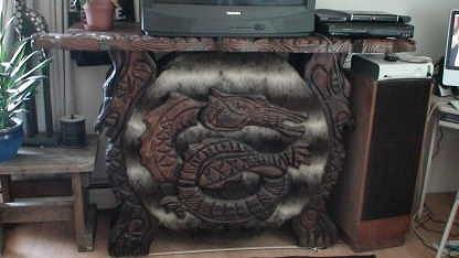 What really surprised me was the size of this bar. It's about 68" wide(nose to nose - there are two dragons carved into the bar top as well), and 43" tall.