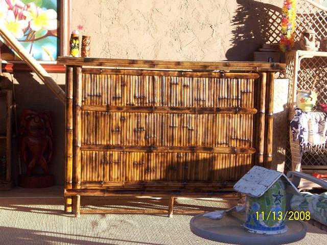 My mother-in-law is an expert junk hunter and loves looking for tiki for me. I have been patiently waiting for a bar to come my way. She spotted this bamboo bar on the side of someones house. She asked the guy if he wanted to sell it and he said he's trade it for some baked goods. This is how it looked when I got it. I just love it and mixed cocktails on it last night. Thanks for all the advice and inspiration!! |