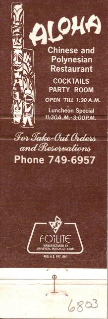Here's my matchbook from Aloha.