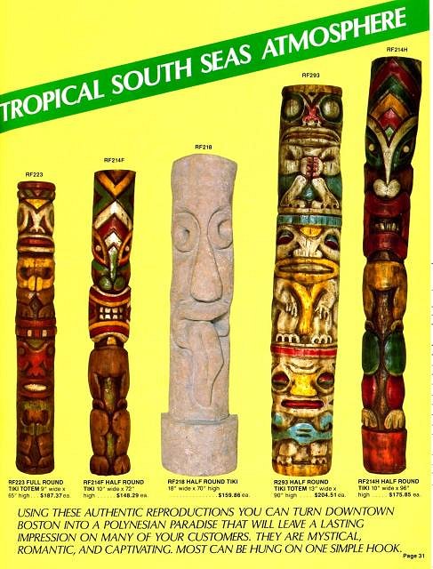 Thanks for posting those pics from the Orchids of Hawaii Catalog Sven, I picked up 4 of the RF293 Half Round Tiki Totems in the fall from the old Hawaiian Jade in New York. My urban archeology had led me to the owners son, Ed Keough who had the fiberglass Tiki poles for sale in Brooklyn for $75 each. (Good deal considering they went for $204.51 each in 1992) Ed told me that his father opened it in the late 60's along with another resturant called Lamps of China. I wish I could have see them in action back then!