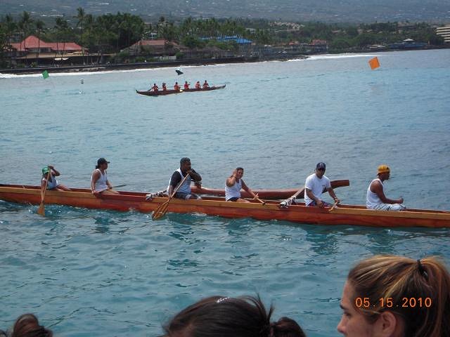 That's me in the 4th seat(4th from right). 3rd & 4th seats are the powerhouse of the canoe. This is the Novice B Mixed(co-ed) team. Novice B are the first time/season paddlers. Individuals are only allowed to race twice in one race day so I was in this & the Novice B Men's team. Tommorrow I'll be in the Novice B Men & the Open Mixed(co-ed) team. Open, means any years/seasoned experience are allowed to paddle which means I'll have to step up my game on this one for sure. I was actually honored when the coach asked me to race with the Open Mixed crew. I guess I'm doing something right. I'll try to take more pics tommorrow, our next race & an actual ancient heiau replica being refurbished on the actual heiau site, It's actually a little to the right of the top pic. |