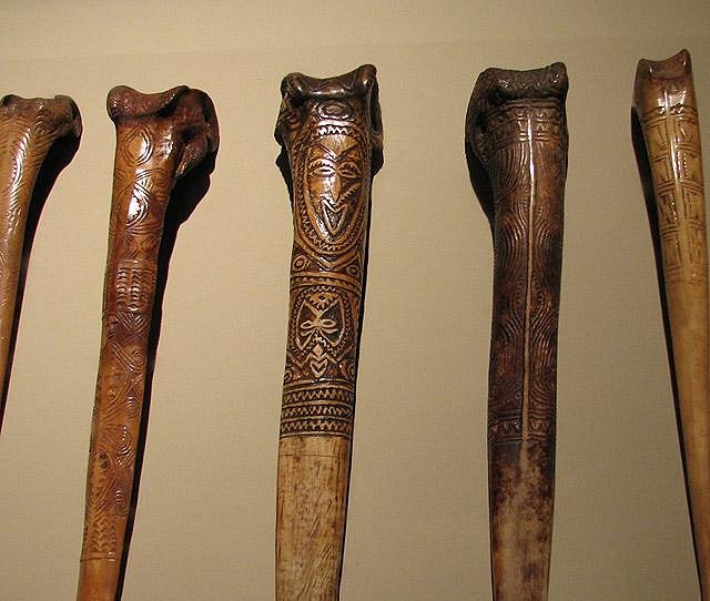 :down: Grade Figures from Vanuatu, carved from Tree Ferns :down: Asmat carvings :down: Several feasting bowls. This is one I liked.