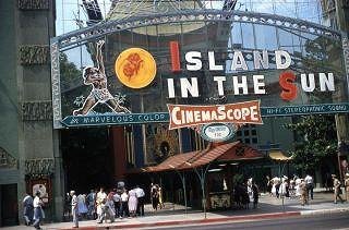 Great picture shared by Vintage Los Angeles on Facebook today. It's the marquee for "Island in the Sun" at Grauman's Chinese Theatre in July of 1957: https://www.facebook.com/permalink.php?story_fbid=140586249373148&id=121097987946929 Link works even if you're not on Facebook.