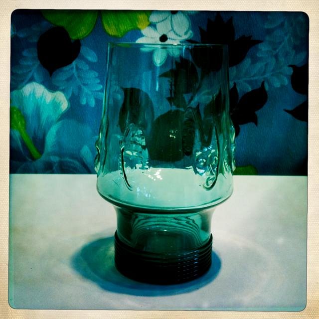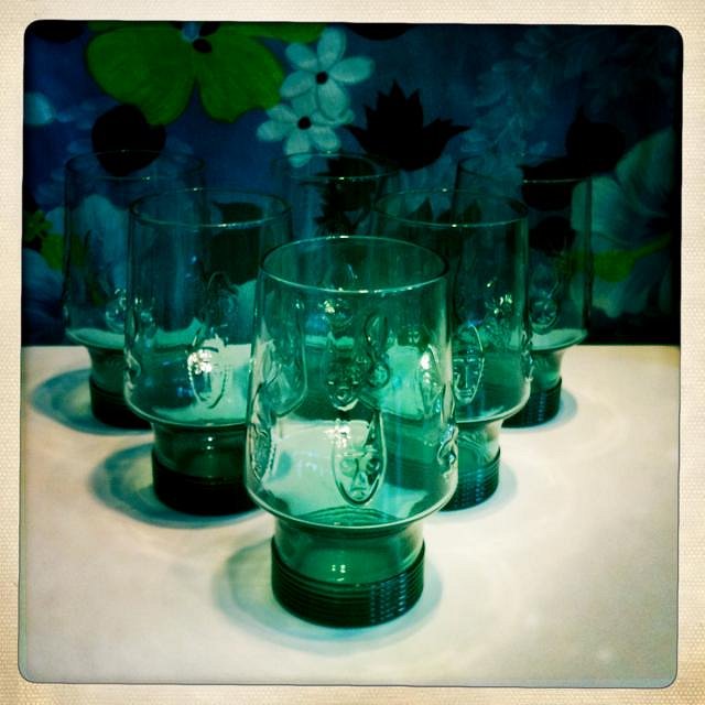 I found one last year in the wild for 90 cents, with almost no gold left, I don't know how I spotted that in the sea of glass on the thrift store shelf (probably because I already had a ceramic Tiki Farm one), but I painted masks with gold paint from the hobby store where you can buy miniatures for gaming etc. Turned out pretty good, but I still wonder if I should have left it the way it was.. |