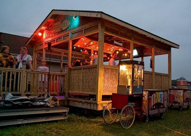 Good lookin' shack---definitely post more pics when you tiki it up! Love that popcorn cart. :)