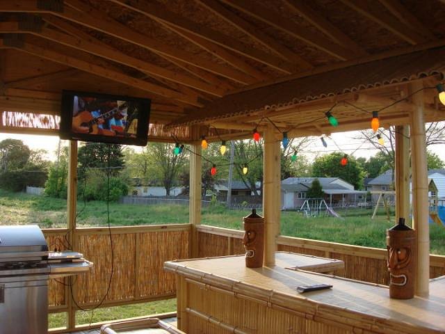 I built my tiki shack last summer. I have more pics of the construction if you want to see them, I will post them. This year i'm going to make some tiki decorations for the shack.