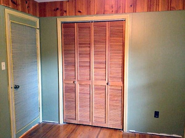 To start things off, I removed the old white (painted many times) louvered bi-fold doors and replaced them with some nice wooden ones that used to belong to a closet in the den that I'm turning into a built-in wet bar. The wood looks much better and I don't have to paint it. YEA!