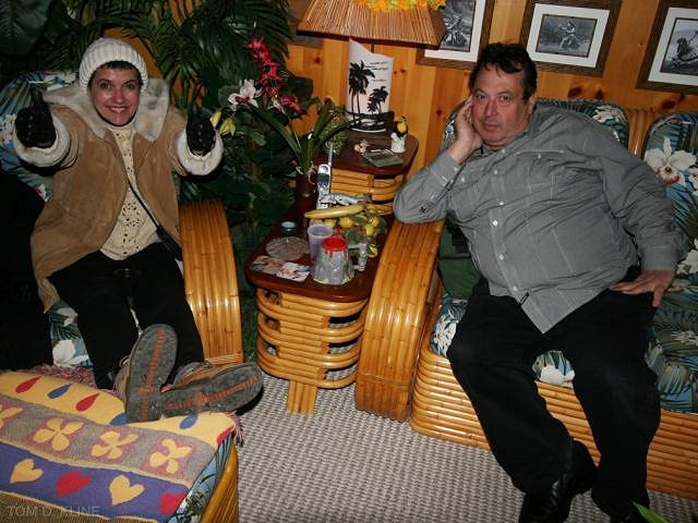 Murph and Claudia, thank you for having another AMAZING PARTY at your EQUALLY AMAZING HOME! Wow, was that "Hoppin' John" yummy! I think I like that culinary tradition of yours. And, of course, what better way to start a brand, spankin' new year than to celebrate with the biggest bunch of yahoos known to civilization! And don't think I didn't notice the honorable place you put that Tiki menorah you won at my event! I am touched! (In the head, that is. No, really. I am thrilled to see it made it into your Waikiki Womb decor!) Much aloha to you for all you do! GREAT NIGHT! WOWEE!! GO POLAR BEARS!!! |