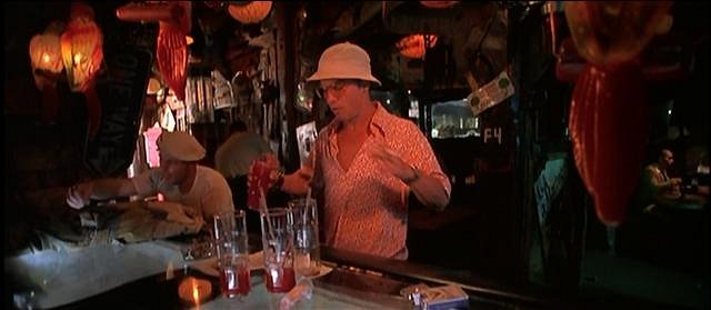 FEAR AND LOATHING IN LAS VEGAS with Johnny Deep (pictured) and Benicio Del Toro in car behind aloha shirts I believe: