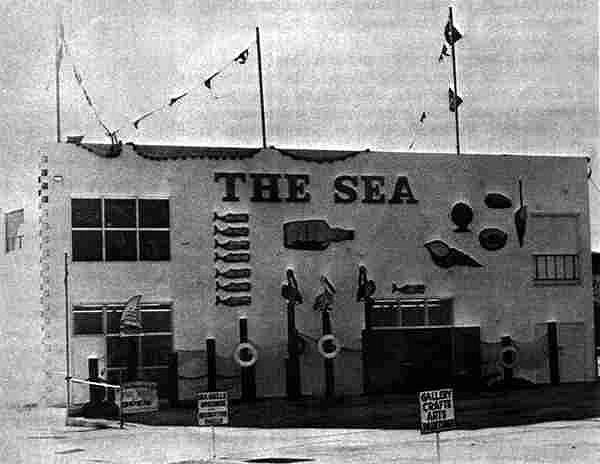 This was a nautical store that did have one tiki out front. As described in a newspaper of the time: "THE SEA, a museum like store with a 1940 vintage lifeboat as the entry canopy, features a vast selection of nautical, sea, and nature related items. See the largest selection of specimen, craft, and decorator shells in California and the skeletons of a 40' finback whale, a yearling grey whale and "Joana" the human.