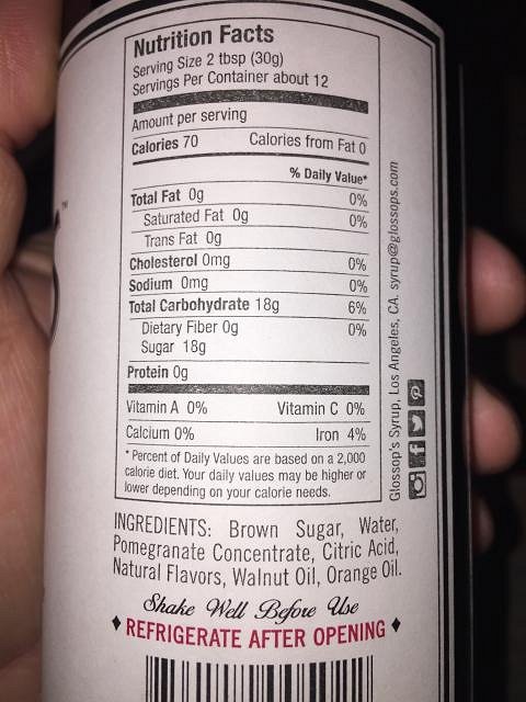 Oh, I got my opinions about the Hipsters, but I will spare you. Well walnut oil has a certain amount of fat content 4 Grams (1 Teaspoon) So even if a small amount is added to each bottle it should be showing a 1 or 2 percent Also most Simple Syrups have a one to one ratio of sugar to water One bottle has 180g Total Servings by volume 1 Serving equals 30g Yet if this is a true simple syrup, at this ratio should have 90g of sugar per bottle Just for reference This bottle is listing 18g of sugar per serving? Looks like the label info is not true to the listed ingredients actual nutritional content |