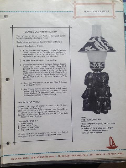I was finally able to stop by Oceanic Arts the other day and Bob van Oosten was kind enough to spend quite some time with me. He opened up the archives and took me around the store to show me some of the great history relating to the Tiki table lamps. His generosity in sharing his time and vast knowledge cannot be over stated. I am so grateful that these guys are not only still in business but have made a real effort to preserve their history and… share it!