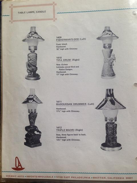 Wow, we already flipped the page. Here are two sightings of the three-sided Hawaiian War God lamps from the OA catalog.